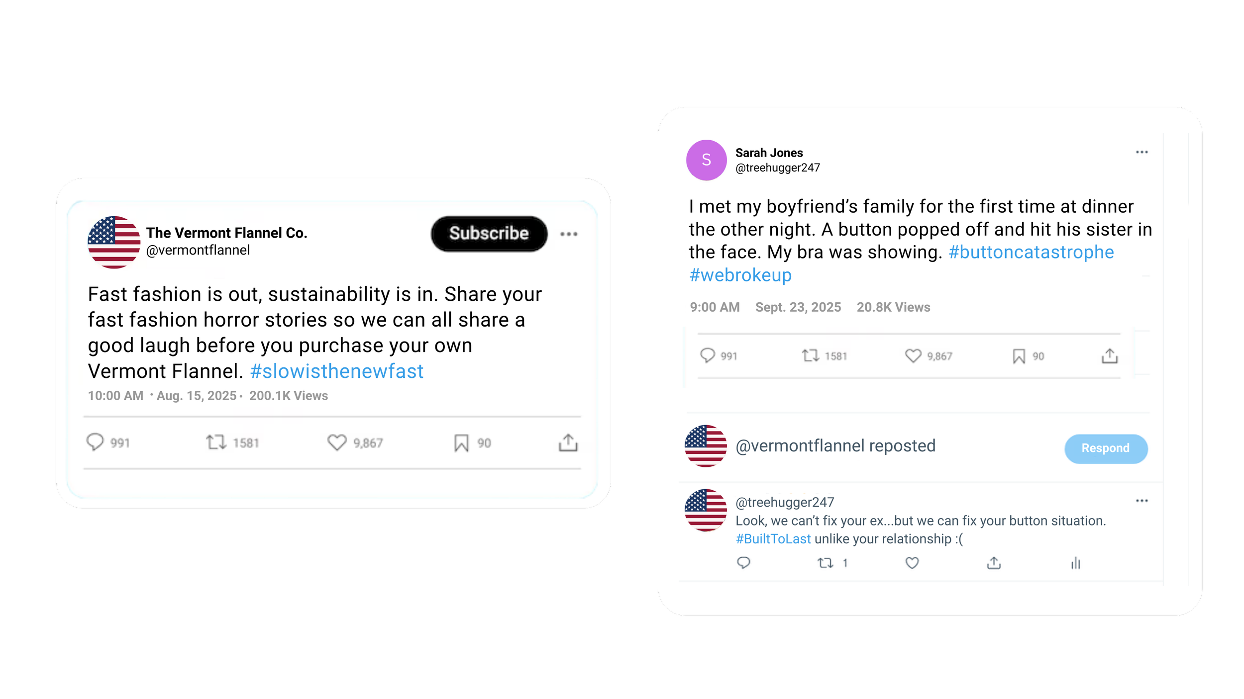 An animated video will be posted across TikTok and other social media platforms showing how the durability of Vermont Flannel products are more sustainable as they hold up to more wear.