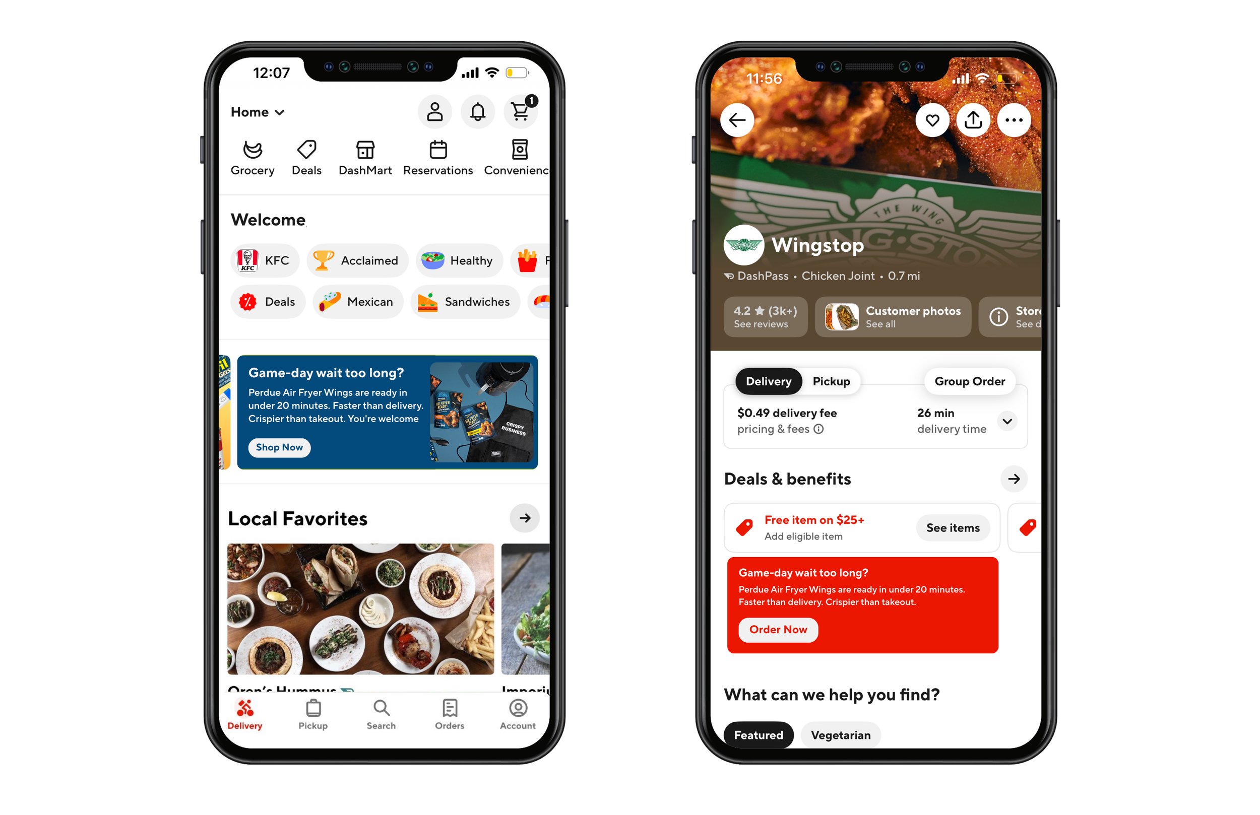 During the Super Bowl, a DoorDash integration interrupts orders to offer Perdue as a faster, crispier alternative to soggy game-day takeout that they can order right on the app.